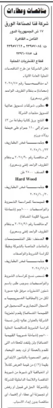 تشمل مناقصات لتوريد Hard Wood وكيماويات Bleaching.