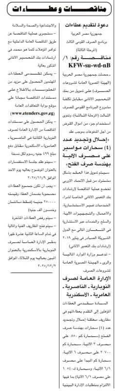 الجهة المعلنة: الإدارة العامة لصرف النوبارية – الناصرية – العامرية – الإسكندرية