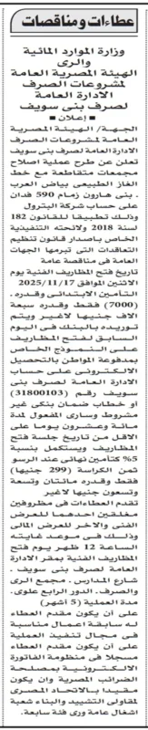 مناقصة وزارة الموارد المائية والري لصرف بني سويف – جلسة 17/11/2025